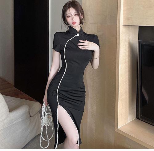 送料無料「沖縄、離島の方は除外です」チャイナドレス「チャイナセクシーパール使いパイピング&セクシーミディアムドレス」 和柄、よさこい、おいらん、着物 キャバ