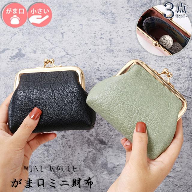 ポイント超超祭 3点セット がま口財布 二つ折り レディース がまぐち 無地 ウォレット 軽い レザー調 ミニ財布 質感 カード入れ お札入れ 小銭入れ 誕生日