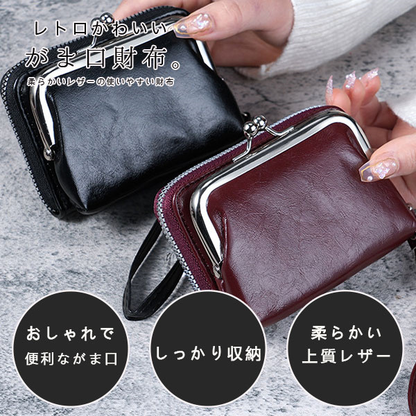 ポイント超超祭 がま口財布 レディース 財布 がま口 無地 コインケース レザー コンパクト ウォレット 使いやすい 革 大容量 小さめ カード 小銭入れ 普段使い