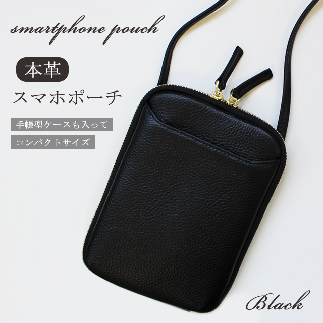本革 スマホポーチ バッグ ブラック ショルダーバッグ スマホポシェット スマホショルダー 携帯ポーチ サコッシュ レディース シンプル 送料無料 即納