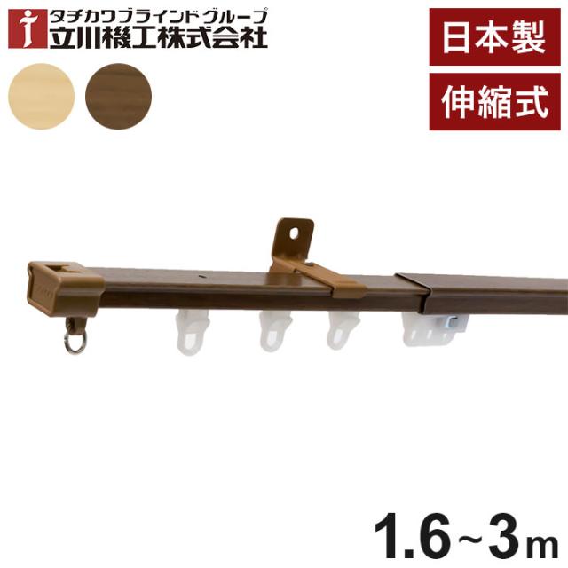 立川機工 伸縮カーテンレール 角型 ティオリオ 1.6~3.0m シングル 日本製 木目調 カーテンレール タチカワブラインド 天井付け 正面付け 伸長式 おしゃれ 北欧 シンプル(代引不可)【送料無料】