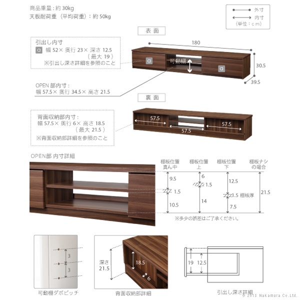 ■サイズ:幅180x奥行39.5x高さ30.5cm・約30kg