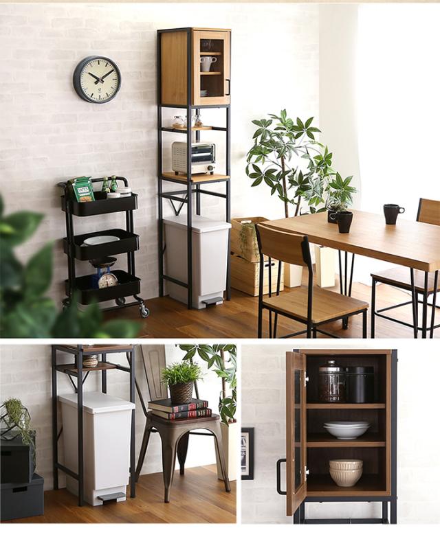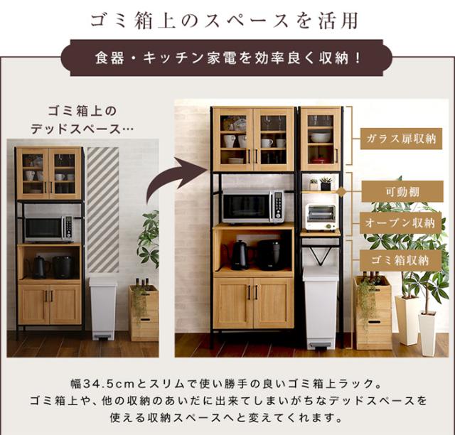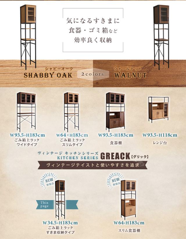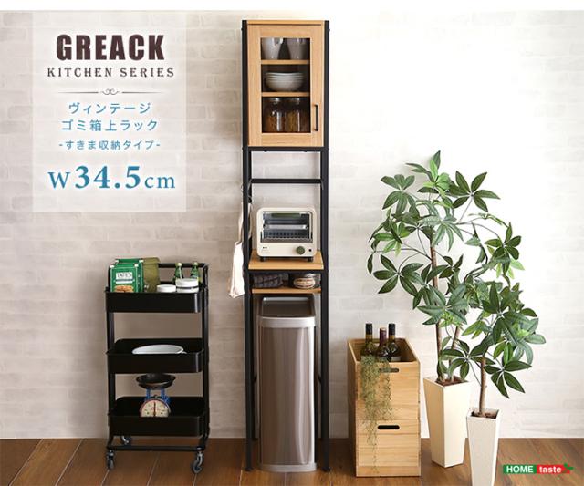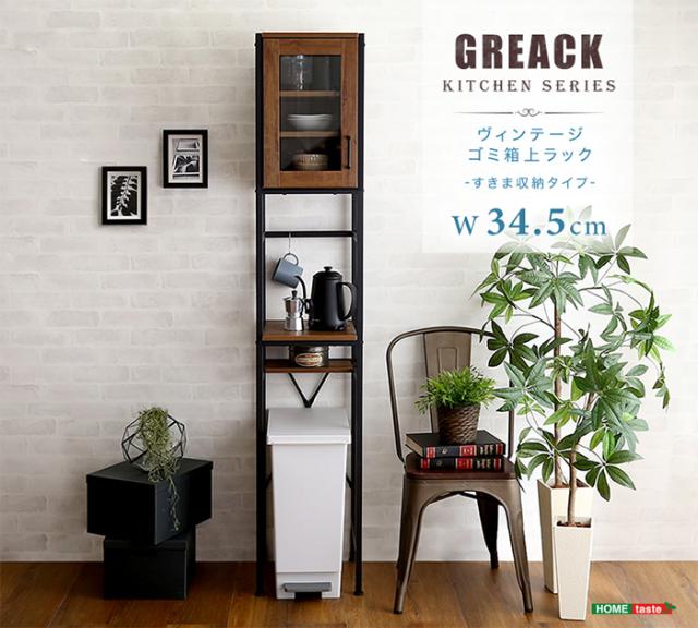 ラック ヴィンテージごみ箱上ラック すきま収納タイプ GCK-T1SS おしゃれ 開き戸 ガラス扉 家具 レンジ台 トースター置き クラシック シンプル スリム 可動棚