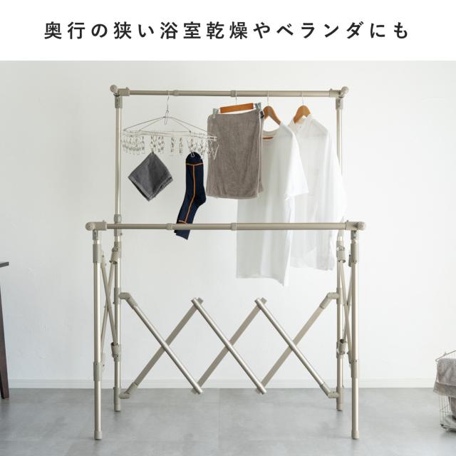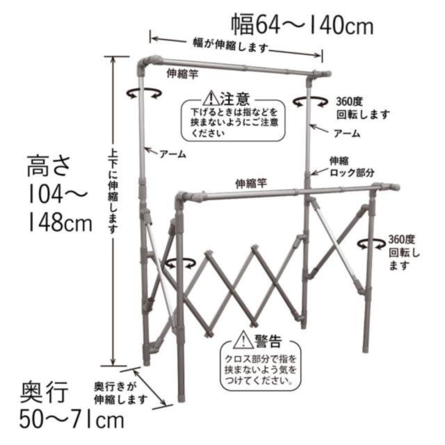 高さ、幅、奥行が伸縮自在なので、その時の洗濯物の量や干す場所など使用用途に合わせて使うことができます。