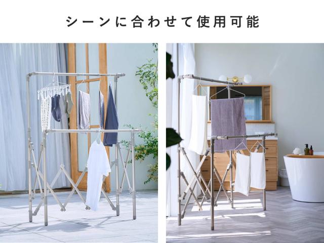 室内干しはもちろん、晴れた日はベランダや庭、雨の日はリビングや浴室などで、シーンに合わせてご使用いただけます。
