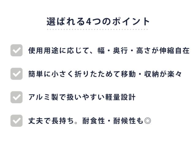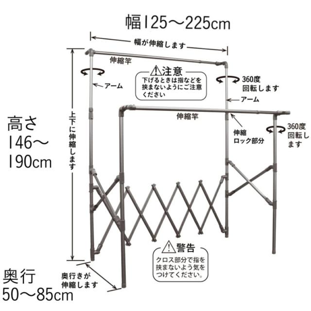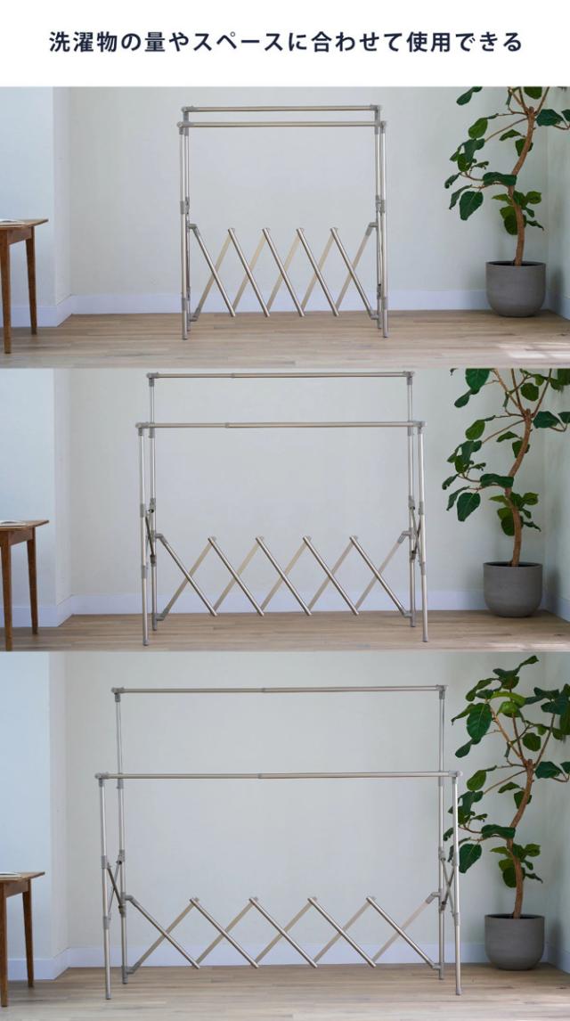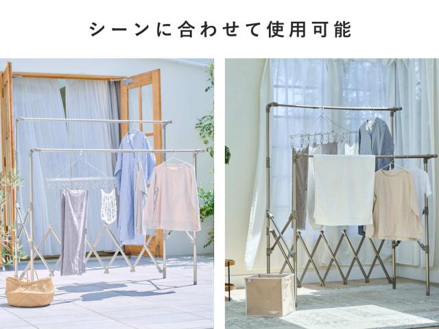 高さ、幅、奥行が伸縮自在なので、その時の洗濯物の量や干す場所など使用用途に合わせて使うことができます。