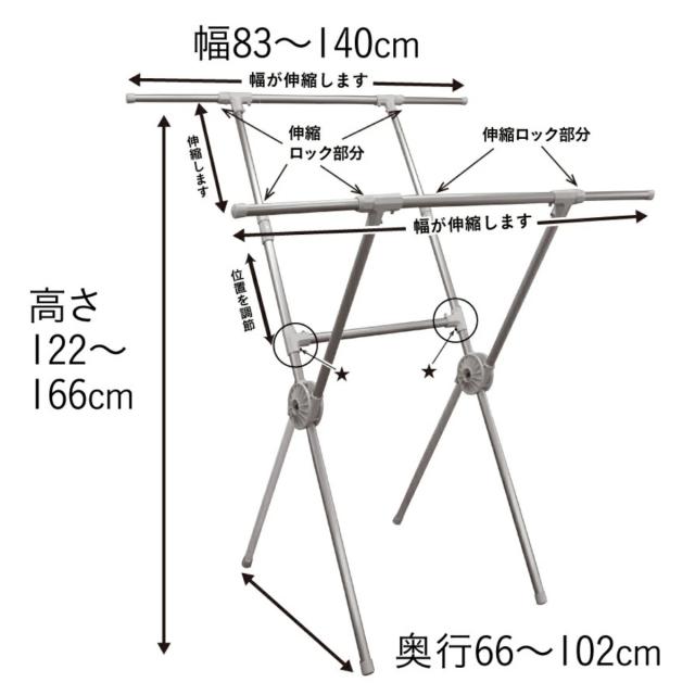 | サイズ | 約 幅83〜140×奥行66〜102×高さ122〜166(cm) |