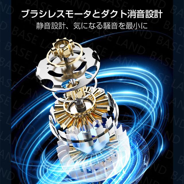 首にかけるだけで、360°全身均一送風でき、ハンズフリー屋内外にも使用可能。