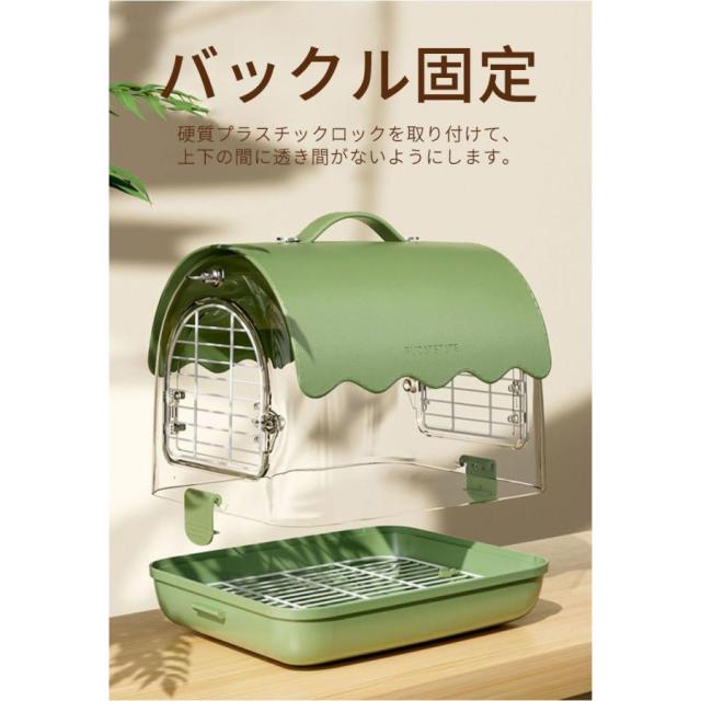 【透明なアクリル製と通気性抜群】健康なアクリル素材と高品質の金網を採用し、透明で通気性良く、丈夫で強度と耐久性も優れています。中が見やすい透明ボディで、どの角度からもよく見え、ペットとの距離がもっと縮まります。また、金網には通気孔がたくさんあるので、ケージ内の空気循環を確保できます。中のペットに新鮮な空気をおくり、長時間入っても蒸し暑くないです。