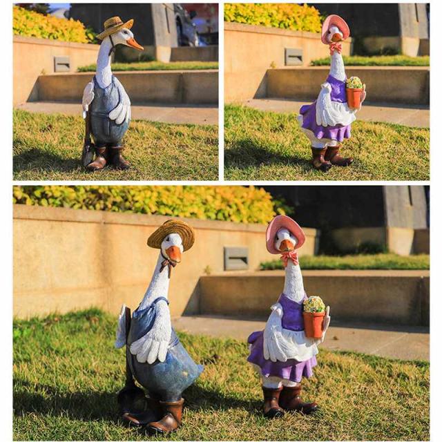 ガーデン オーナメント アヒル アンティーク 動物のオブジェ ガーデン アウトドア 園芸装飾 鴨の置物 ガーデニング置物 樹脂材質 部屋装飾品 新築祝 ダック