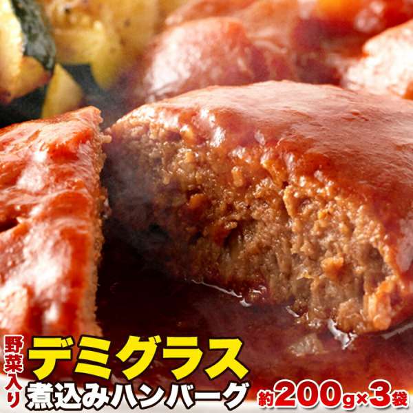 【年内発送不可】 【ゆうパケット出荷】野菜入り デミグラス 煮込み ハンバーグ 約200g×3袋 温めるだけ 簡単 便利 ごはんがすすむ アレンジも 常備 SNC00010011