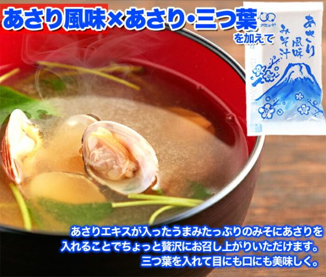 ■原材料名:【あさり風味みそ汁】米みそ(国内製造)、食塩、砂糖、アサリエキス、わかめ、かつお節調味エキス、たん白自己消化物/酒精、調味料(アミノ酸等)、(一部に大豆を含む)