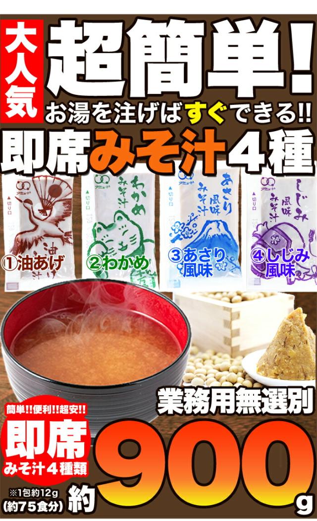 【ゆうパケット出荷】無選別 即席みそ汁 4種 約900g 約75食分 ストックしておくと便利 お湯を注げばすぐできる 簡単 個包装 みそ汁の定番 油あげ わかめ あさり風味 しじみ風味の4種類がどっさり ポイント消化 SNC00010019