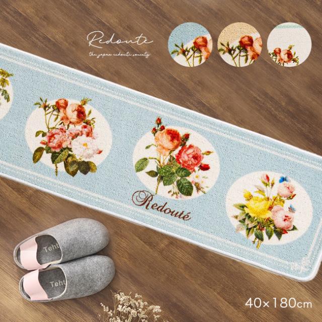 キッチンマット おしゃれ 洗える ルドゥーテ バラ 雑貨 台所マット 花柄 幅 240センチ 厚手 キッチン カフェ 洗濯機で洗える 丸洗い マット フローリング 大きめ 細長い ロング 薔薇雑貨