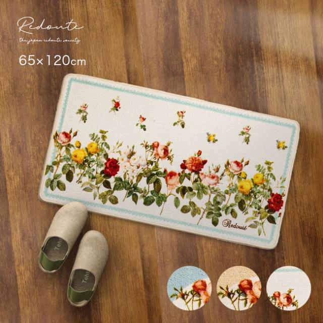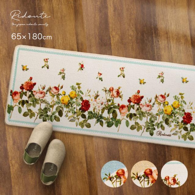 ルドゥーテ キッチンマットB 65×240cm(キッチンマット おしゃれ 洗える ルドゥーテ バラ 雑貨 台所マット 花柄 幅 240センチ 厚手 キッチン カフェ 洗濯機で洗える 丸洗い マット フローリング 大きめ 細長い ロング 薔薇雑貨)
