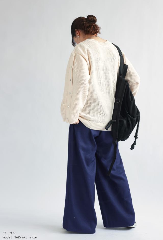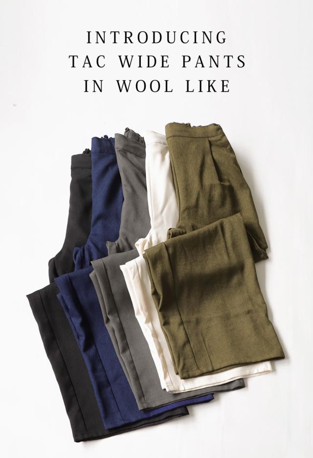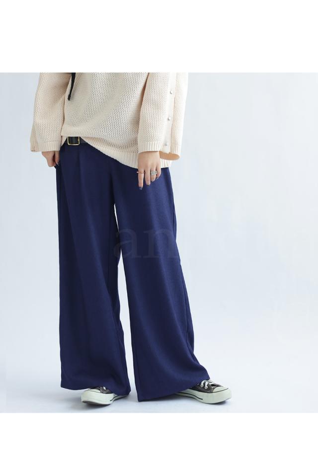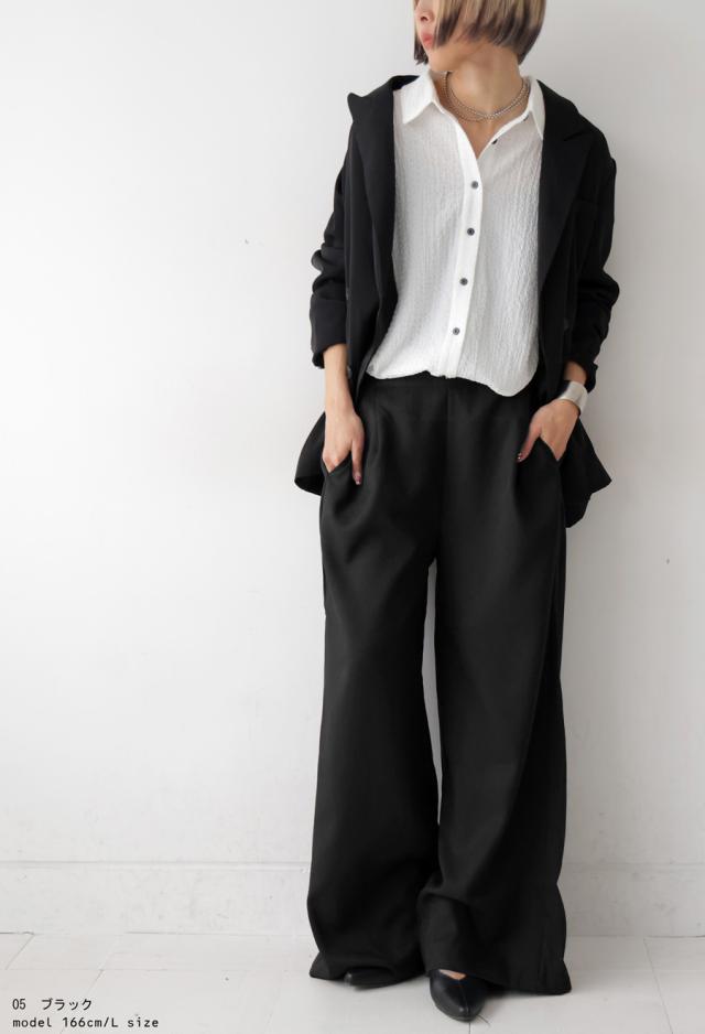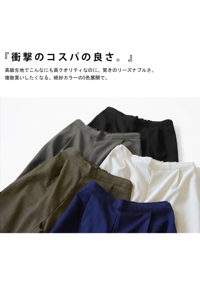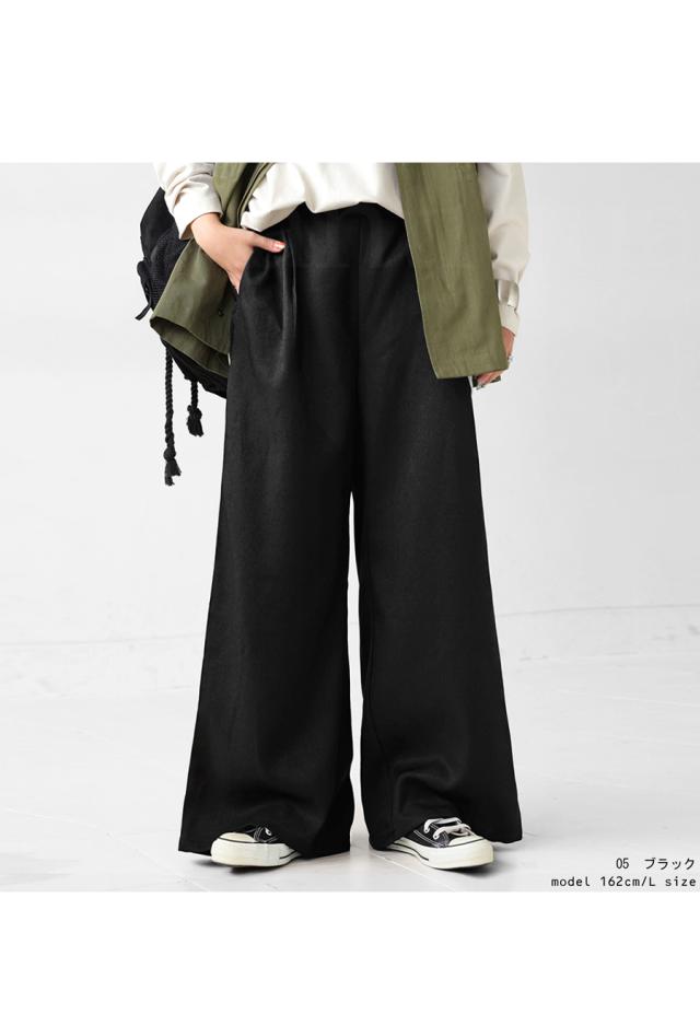 la-00026 ワイド ゆったり 長ズボン シンプル きれいめ タック タックパンツ 前フラット 後ろゴム 細見え 体型カバー モード ウールライク 大きめ 大きいサイズ サイズ展開 M L