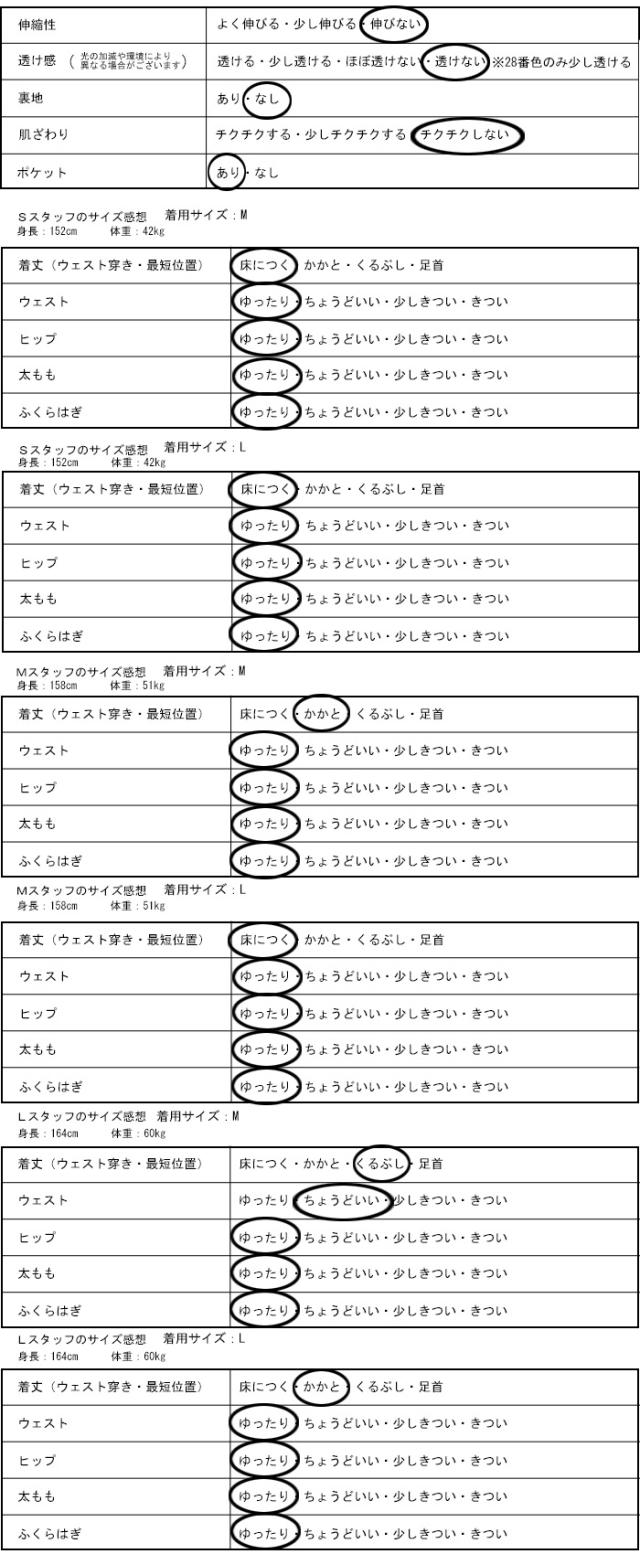 - ウエストは紐付きのゴムでとても楽ちんです。163センチ47キロで丈はちょっと短めなので、腰穿きしてちょうどいい感じです。季節を問わない生地感で、お洗濯後はスグに乾いて皺も気にならずに良いです(`・ω・...