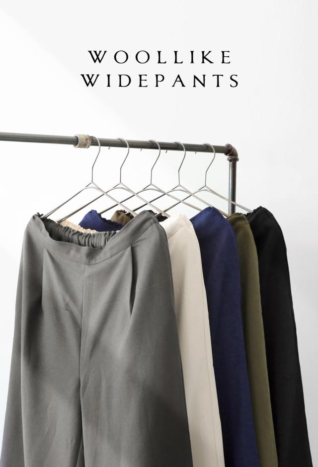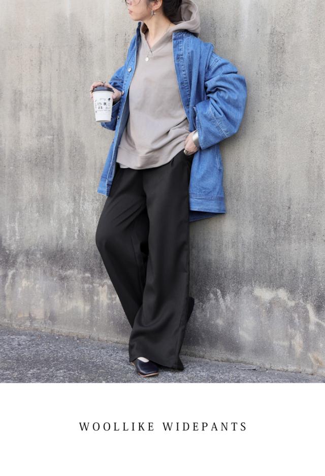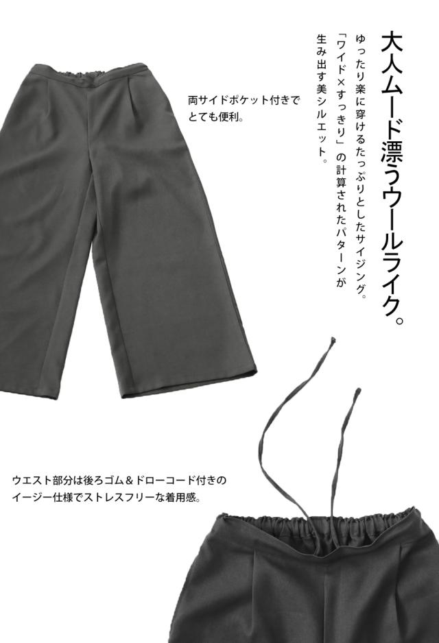 上質感のあるウールライク素材で仕立てた大人のためのワイドパンツ。
