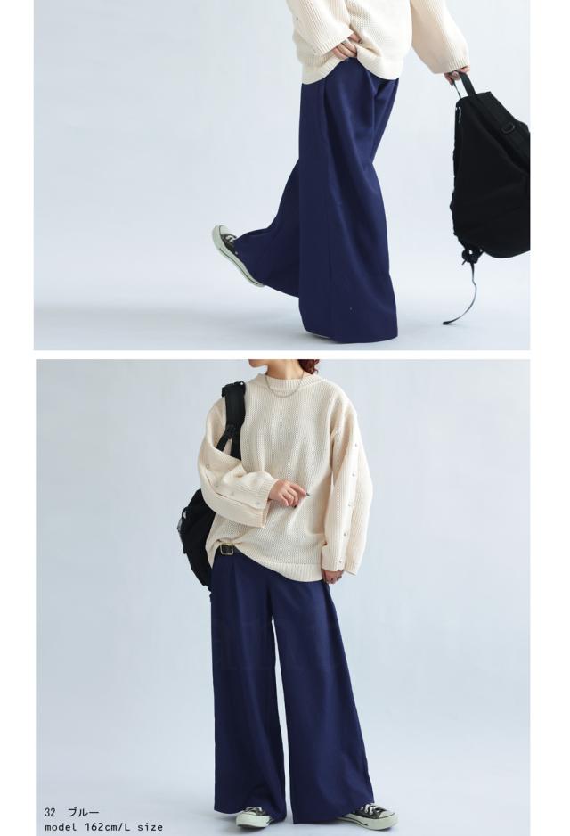 特別送料無料 ワイドパンツ パンツ レディース ボトムス ロング 無地・(500)メール便可