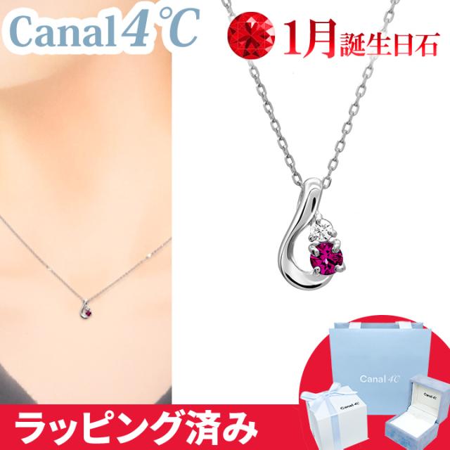 カナル 4°c ネックレス 1月誕生日石 ロードライトガーネット ダイヤモンド しずく ヨンドシー canal4℃ レディース プレゼント ジュエリー アクセサリー