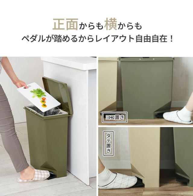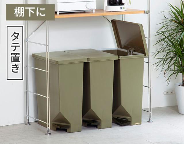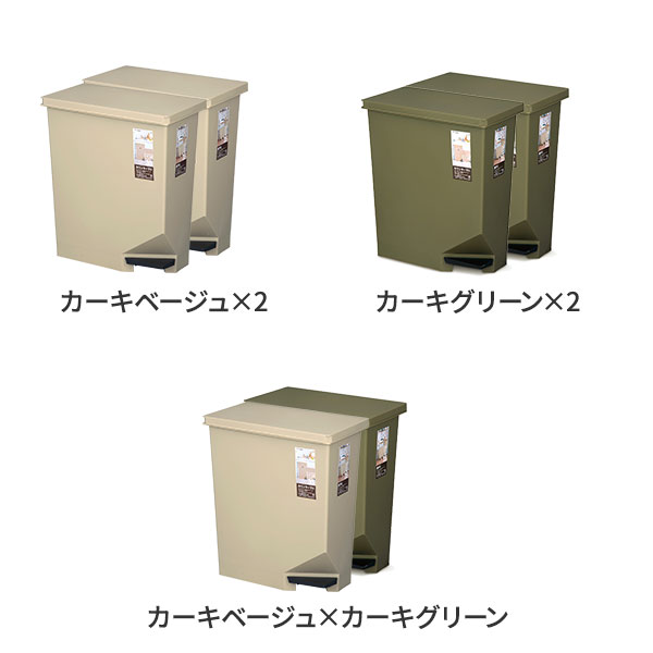 ゴミ箱 おしゃれ 棚下・カウンター下にも置けるペダルペール35 2個セット 35L カラー: カーキベージュ / カーキグリーン | ペダル ごみ箱 ダストボックス スリム キッチン リビング 分別