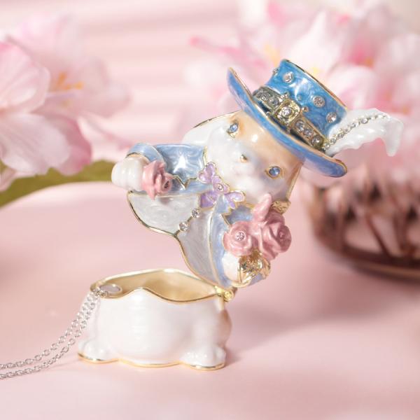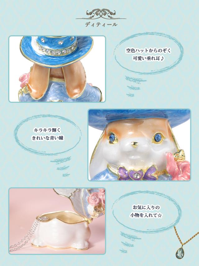 華やかなハットと衣装を身に纏い、ふんわり垂れ耳がチャームポイントなうさぎさん。
