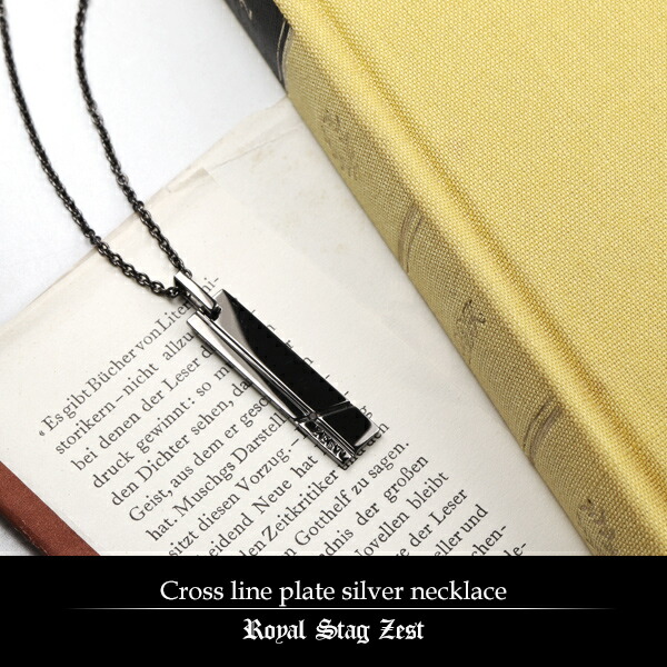 【RoyalStag】 クロスライン スリット ブラック プレート ネックレス
