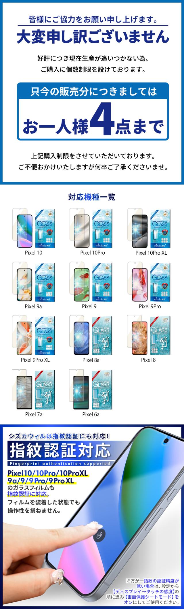 Pixel10 / Pixel10 Pro / Pixel10 Pro XL / Pixel9a / Pixel9 / Pixel9 Pro / Pixel9 Pro XLは指紋認証に対応しております。