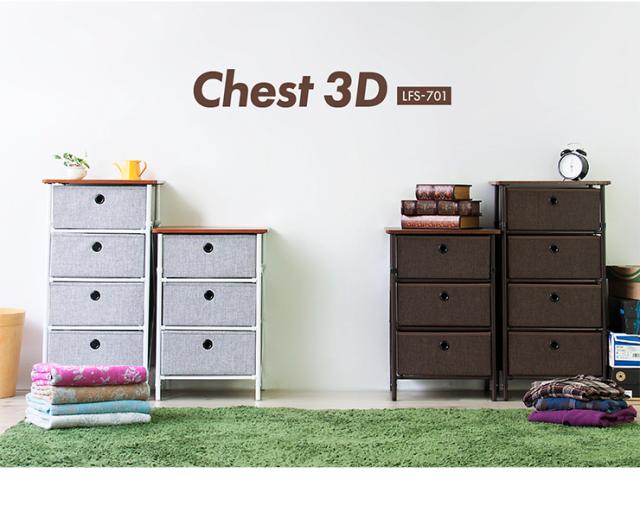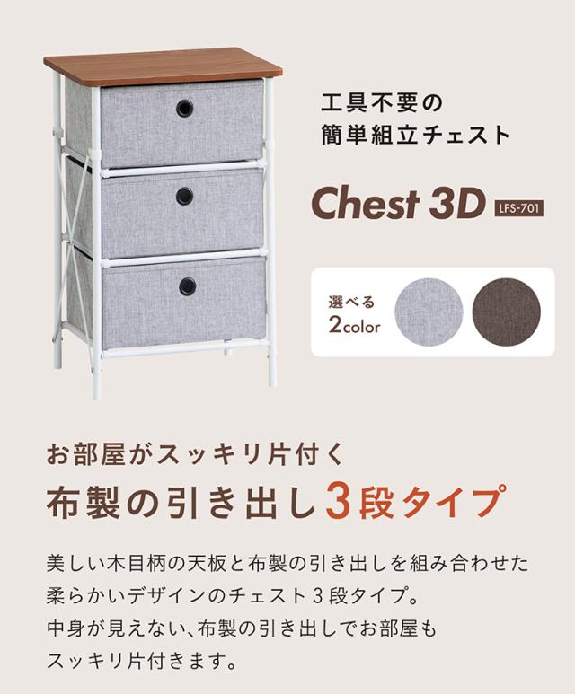 【簡単組立】チェスト 3段ボックス 3段チェスト ラック 3段 収納チェスト 布製 2色対応 グレー ブラウン 収納ボックス 3段ラック シンプル おもちゃ収納 小物収納 衣類収納 ストレージ LFS-701