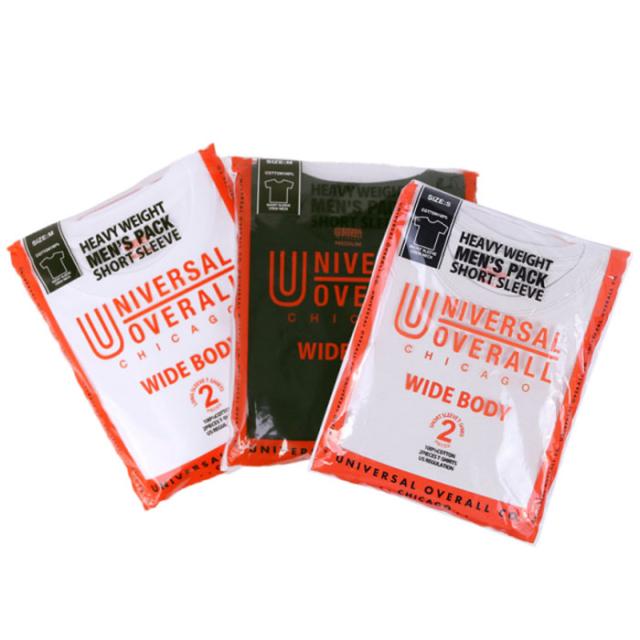 2枚セット ユニバーサルオーバーオール メンズ ワイドヘビーウェイト ショートスリーブ UVOP-002A 半袖Tシャツ トップス カジュアル シンプル ホワイト 白 ブラック 黒 グレー 灰色 送料無料 UNIVERSAL OVERALL UVOP-002B