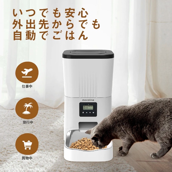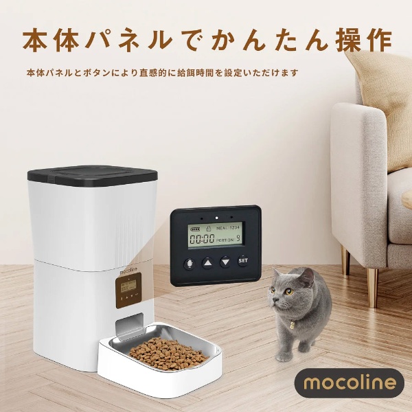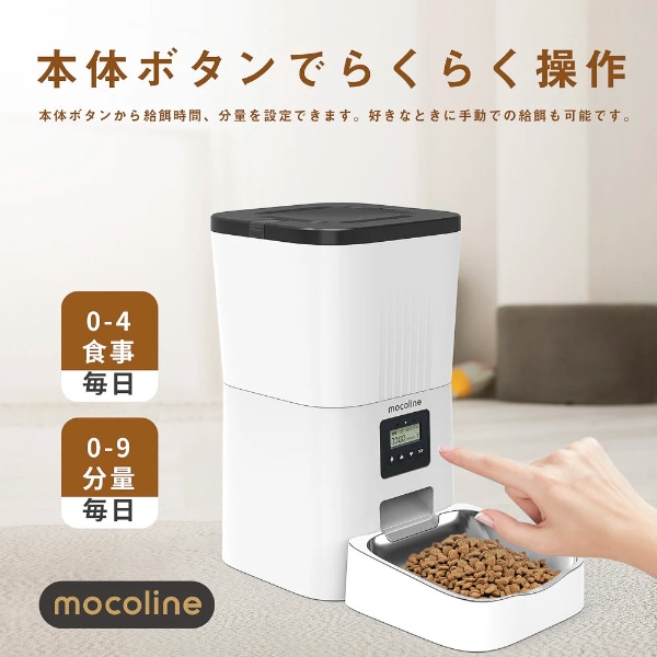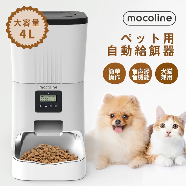 ペット用自動給餌器 mocoline モコライン 犬用 猫用 オートフィーダー ボタン式 4L MCFD-03A