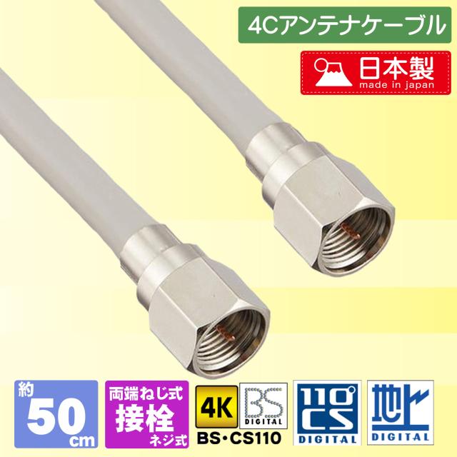 4K/8K対応 地デジ アンテナ4Cケーブル 接栓×接栓 0.5m 50cm S4-FP-FP-0.5 エスエスエーサービス