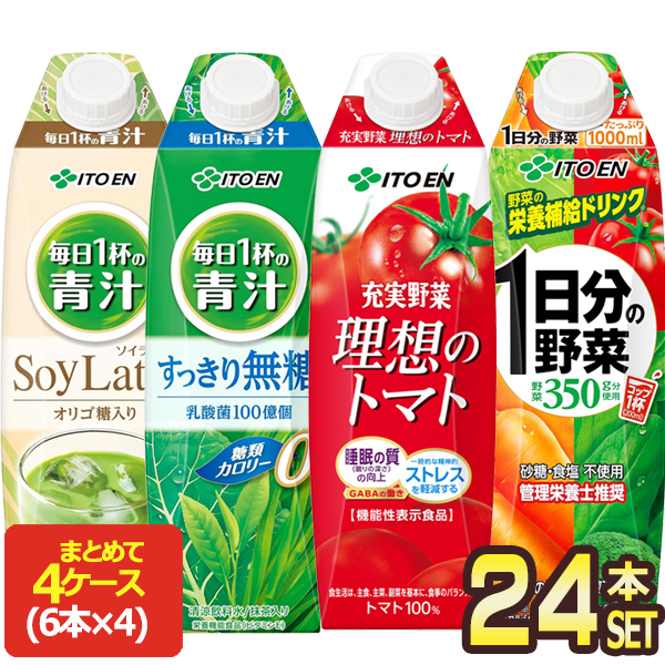 伊藤園 野菜ジュース 1L紙パック 24本[6本×4ケース]選り取り[屋根型キャップ 1日分の野菜 理想のトマト 毎日1杯の青汁 毎日1杯の青汁 無糖]【3〜4営業日以内に出荷】送料無料