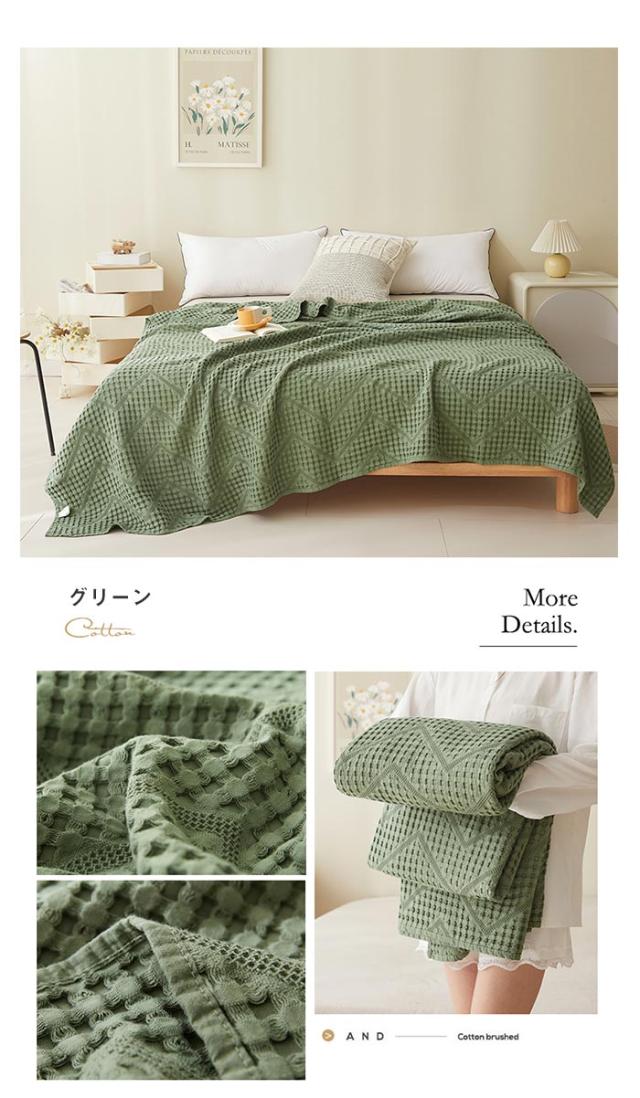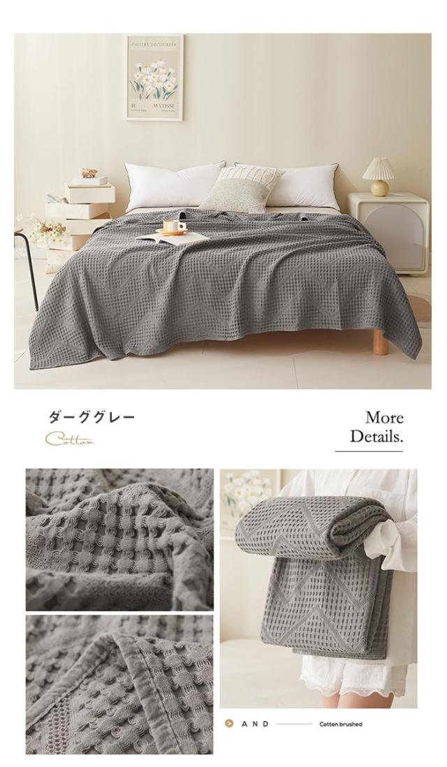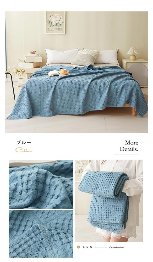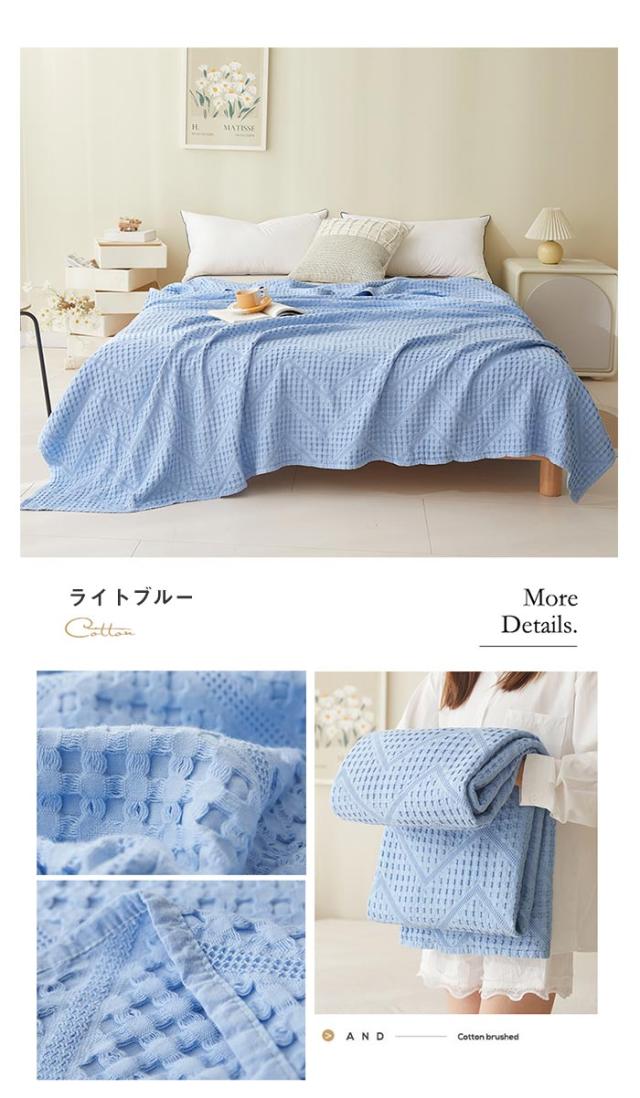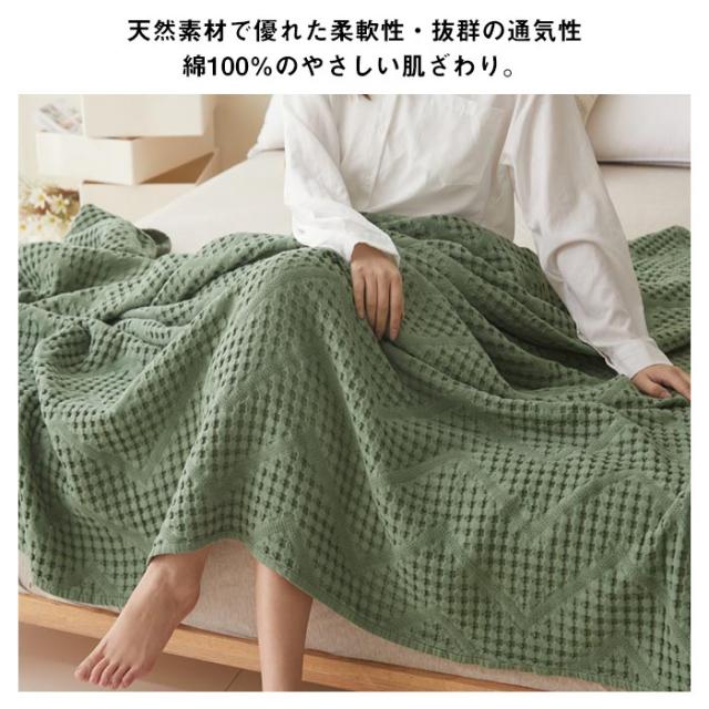 タオルケット ワッフルケット ブランケット 綿100% 洗える 北欧 ダブル 180x200cm 肌掛け ソファーカバー 冷房対策 大判サイズ 無地 夏用 寝具 オールシーズン