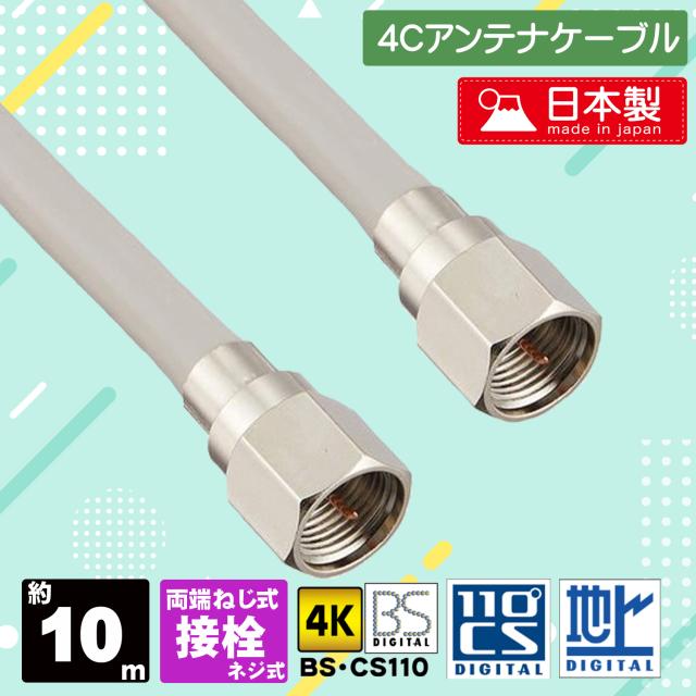 4K/8K対応 地デジ アンテナ4Cケーブル 接栓×接栓 10m S4-FP-FP-10 エスエスエーサービス
