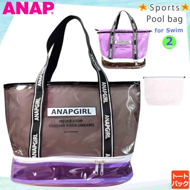 プールバッグ 女の子 キッズ ジュニア 子供 ショルダー ブランド スイムバッグ ビーチバッグ 水泳 トート ビニールバッグ アナップ ANAP 黒 ブラック パープル