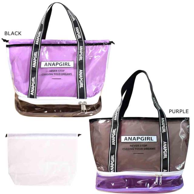 | プールバッグ 女の子 キッズ ジュニア 子供 ショルダー ブランド スイムバッグ ビーチバッグ 水泳 トート ビニールバッグ アナップ ANAP 黒 ブラック パープル | |