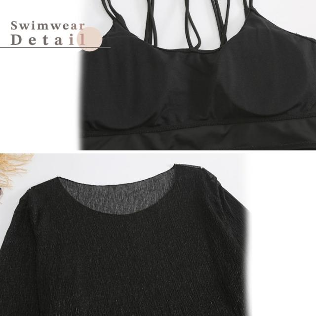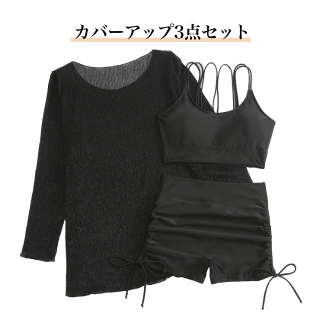 【M〜6L】トップスとビキニのカバーアップ水着3点セット