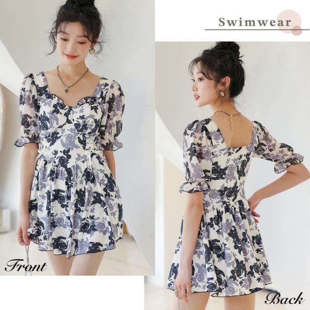 | 商品名 | パフ袖花柄ワンピース水着 |