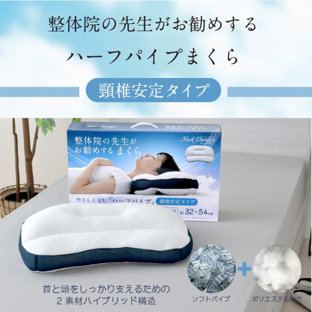 整体師が勧める ハーフパイプ枕 32×54cm パイプ わた 頸椎安定 安定 体圧分散 肩までリラックス 包み込む枕 癒し枕 快眠枕 まくら 先生監修 首サポート カバーが洗える 贈り物に