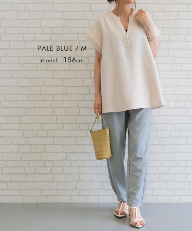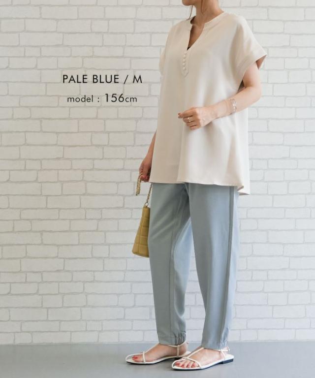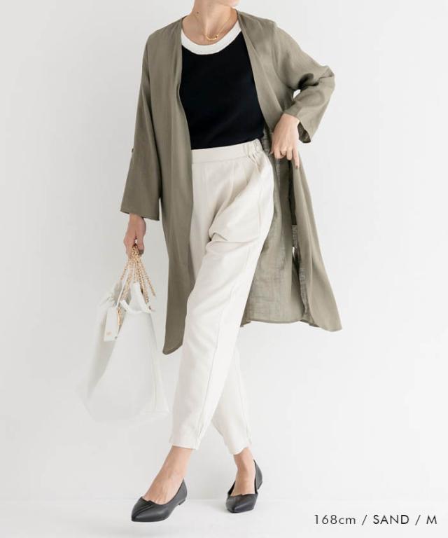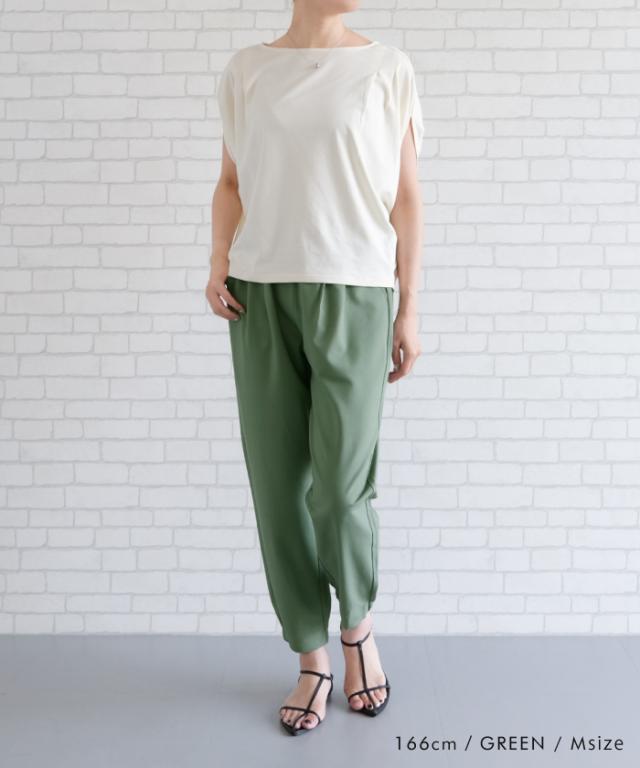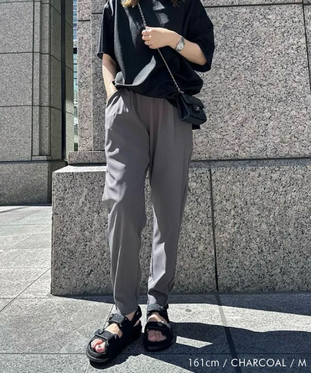 すっきりとしたシルエットと足首がキュッと綺麗に見える丈感で女性らしいスタイルに。