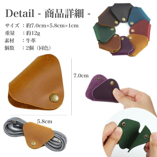 2個セット 本革 ケーブルホルダー コードクリップ 牛革 配線 イヤホン 薄型 コードホルダー おしゃれ 高級感 軽量 コンパクト PR-C003【メール便 送料無料】