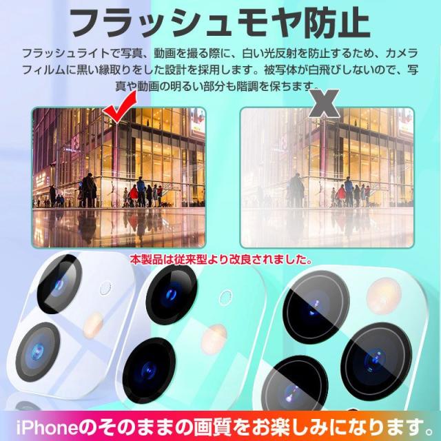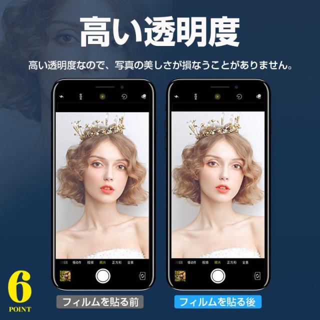 iPhone12 iPhone 12 Pro iPhone 12 Pro MAX iPhone 12 mini対応カメラレンズフィルムです。カッターやナイフなど鋭利なもので切りつけても傷が付きにくい特殊表面加工を施した9Hガラスフィルムで摩耗や傷からカメラレンズを保護します。装着していることが解らないほどの薄さ。スリムな強化ガラスはより軽く、使用感に優れています。安心の飛散防止加工を施し、万が一の落下などの衝撃によるガラスの破損時にも破片が散らばらない仕様になっています。特殊なコーティングを施しているので、指紋、化粧品等の付着を抑え、仮に付いてしまっても拭き取りが楽です。気泡の入り込みを防ぎ、わずかに入ってしまった気泡も抜けやすくなり、自己吸着なので誰でも簡単に貼り付けることができます。高い透明度なので、写真の美しさが損なうことがありません。