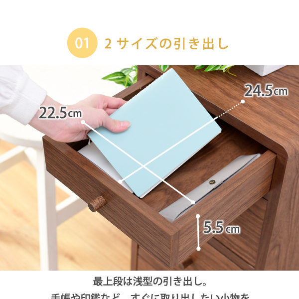 引き出し1段目:幅22.5×奥行24.5×高さ5.5(有効:6)cm