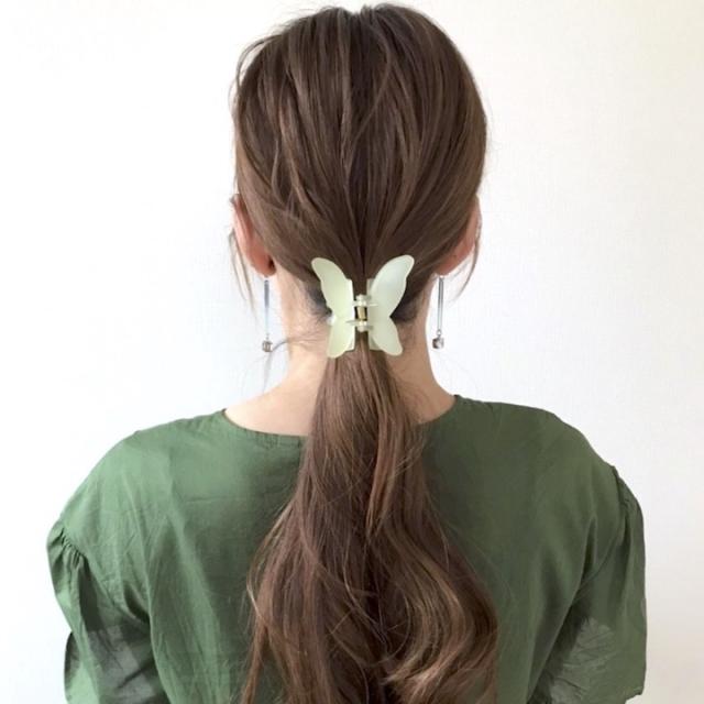バタフライモチーフのバンスクリップ。 強めのバネで、量の多い髪もがっちりホールドします。