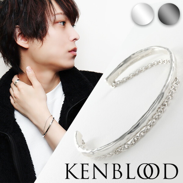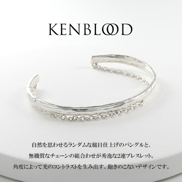 KENBLOOD ケンブラッド 選べる2カラー 槌目 チェーン 2連 バングル メンズ シルバー925 メンズブレスレット シルバーブレスレット シルバーバングル