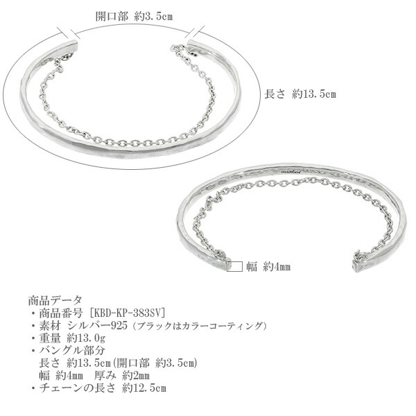 (KBD-KP-383SV/KBD-KP-383BK/シルバーアクセサリー/シルバーアクセ/銀/SV/SV925/シルバーバングル/シルバーブレスレット/メンズアクセ/メンズバングル/シンプル/チェーンブレスレット/おしゃれ/さりげない/大人/クール/スタイリッシュ/綺麗/きれいめ/カジュアル/上品/男性/彼氏/夫/旦那/息子/孫/社会人/高校生/大学生/恋人)