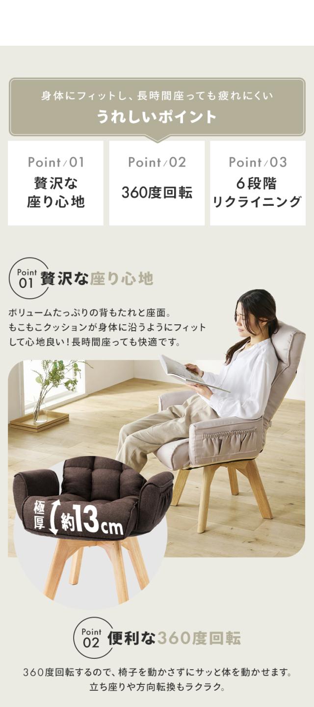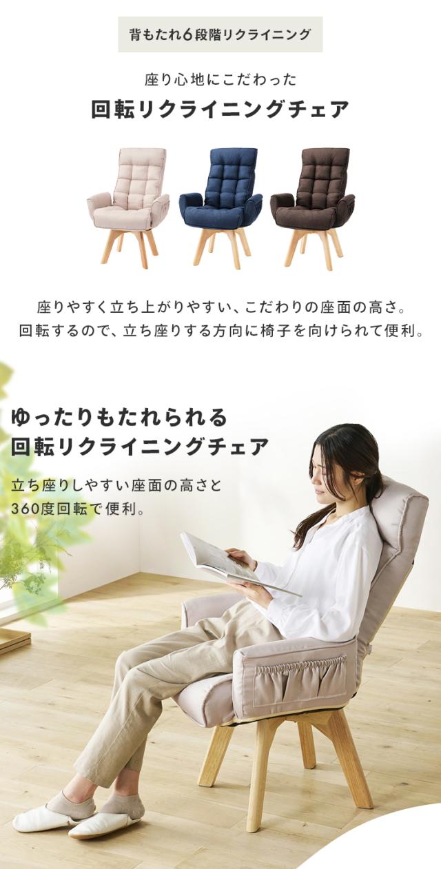 座り心地にこだわった回転リクライニングチェア【肘付きタイプ】
