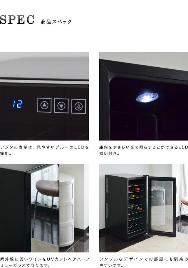 ・太めのワイン(シャンパンボトルやブルゴーニュワインなど)はフリースペースにお入れください。 ・こちらの商品 はヒーターレスモデルのため、外気が庫内設定温度より低い場合、庫内温度が外気温に近づく傾向がございます。設置いただく環境を予めご確認ください。 ・ワインセラーの設置場所は温度変化の少ない場所へ設置願います。 ・室温が25以上や12度以下になった場合は温度調節が正しく作動しない場合があります。 ・加湿/加温機能はございません。 ・庫内温度の上昇によりワインに変質があっても保証致しかねます。庫内温度には充分ご注意ください。 |