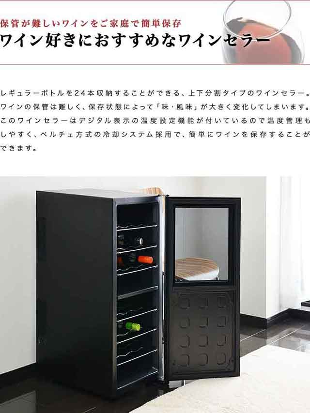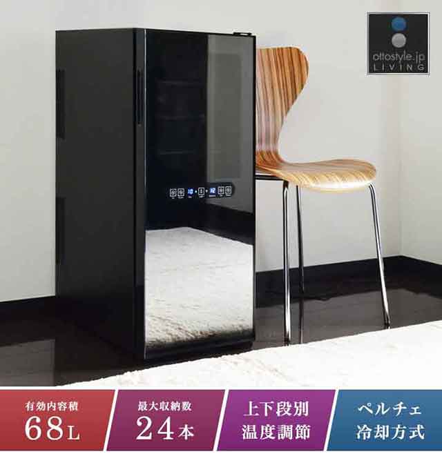 ワインセラー 家庭用 大容量 24本 ペルチェ式 1ドア 上下2室 2温度 8段 68L UVカット ハーフミラーガラス デジタル 温度管理 ワインクーラー おしゃれ 冷蔵庫 赤ワイン 白ワイン ロゼ 日本酒 シャンパン 保管 店舗用 1年保証 送料無料